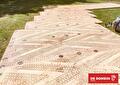 Wir ersetzen unsere Holzbodenplatten durch Kunststoffplatten, die aus recyceltem Kunststoff hergestellt sind. Das Material besteht aus hochdichtem Polyethylen.